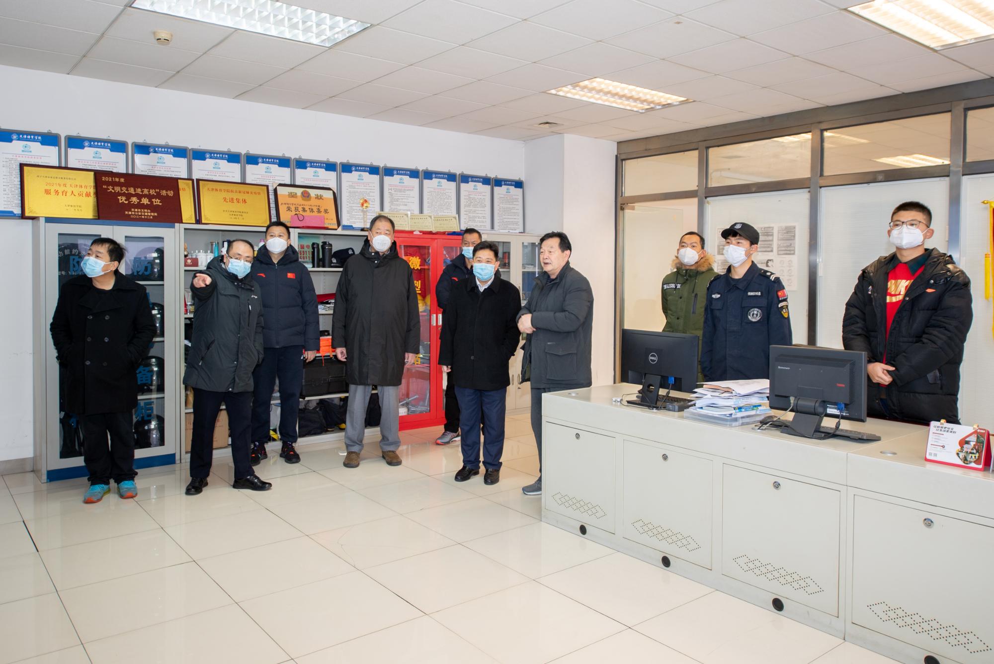 2022年1月31日(农历除夕)上午,校领导王欢、吉承恕、张立顺、张欣、宋爱军、张卫国一行,先后来到团泊校区的行政值班室、能源站、车队值班室、学生宿舍楼、图书馆、综合服务楼,以及河西校区的保卫室、楼宇物业室、变电站等地,专程看望慰问在春节假期仍坚守工作岗位的学工、网信、后勤、保卫、基建等教职员工,向他们致以诚挚的问候和虎年新春祝福,并送上春节慰问品。