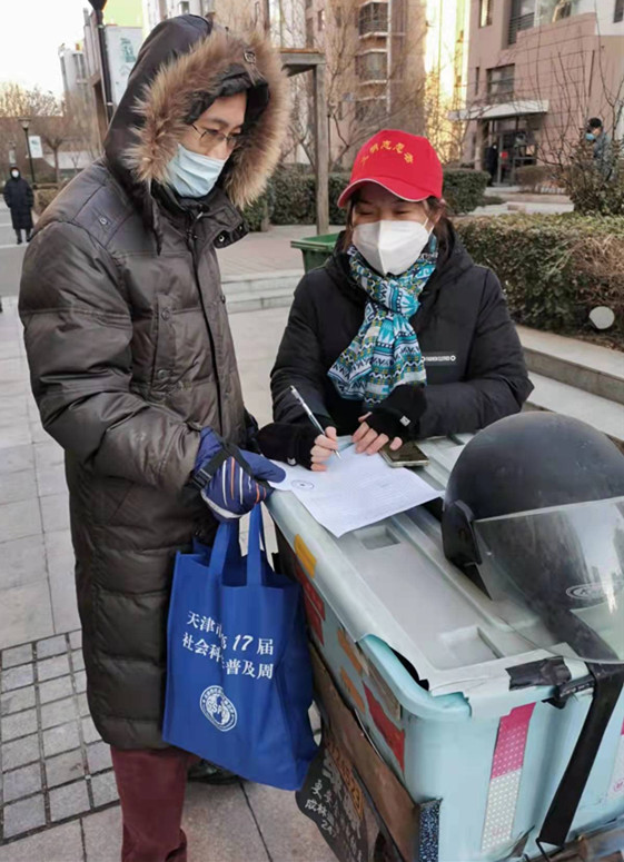 王化强,中共党员,体育经济与管理教研室教师,在西青区张家窝镇四季花城社区开展居民信息登记、号码条发放,以及核酸筛查通知等。