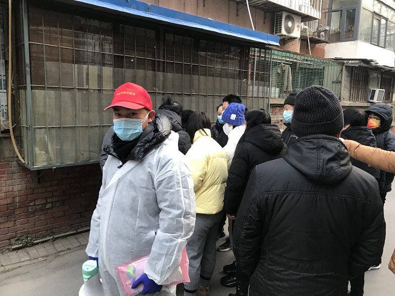 谢云,中共党员,运动训练调控与方法教研室教师,在西青区李七庄街道宏城御溪园负责登记需要入户检测的人员信息等工作。