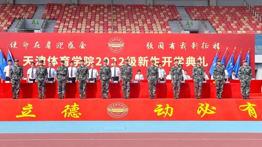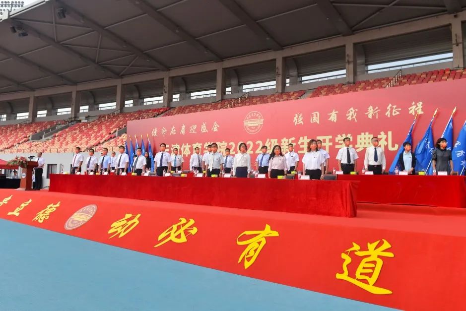 2022年9月14日上午9时30分,天津体育学院2022级新生开学典礼在田径场举行。党委副书记、院长张欣,党委常委、市纪委监委驻天津体育学院纪检监察组组长张洺涛,党委常委、组织部部长、体育教育学院院长叶加宝,党委常委、宣传部部长刘原,党委常委、统战部部长依惠琴出席典礼。相关职能部门和二级教学单位领导、全体新生辅导员、教师代表与全体新生齐聚一堂,共同欢庆开学盛典。开学典礼由党委副书记宋爱军主持。