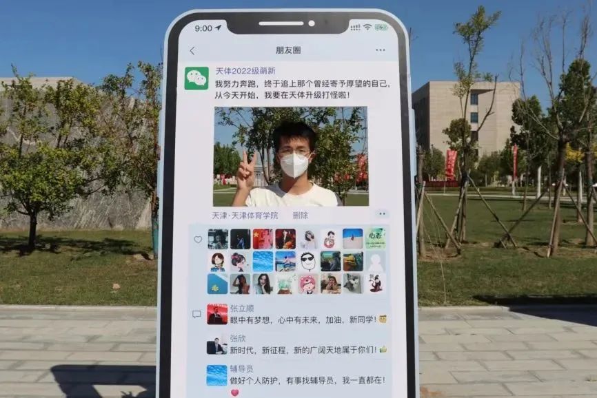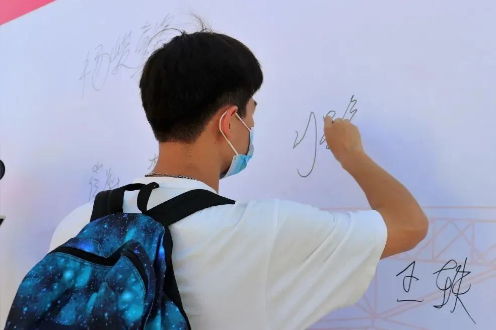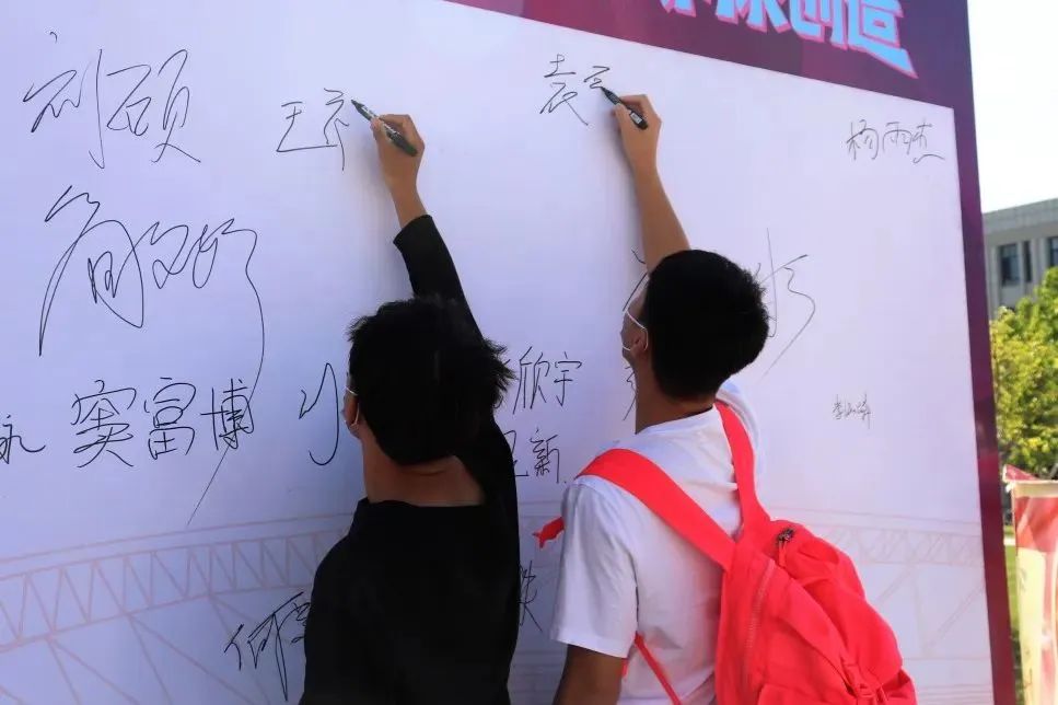 迎新现场秩序井然,展板、道旗、电子屏、指示牌、签字板一应俱全。新生们纷纷在签字板上写下对自己大学生活的祝福与期许,在展板前拍照定格自己初入天体的难忘时刻。