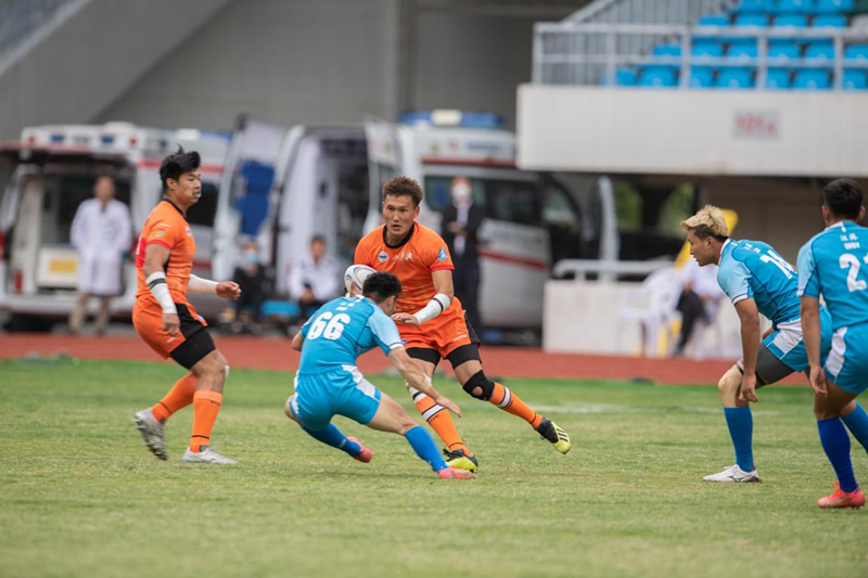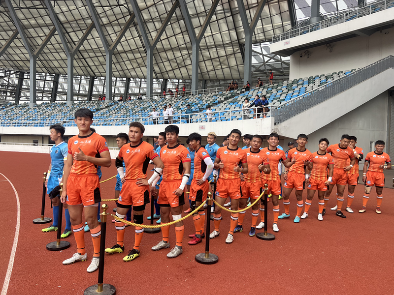 在第一天的2场小组赛中,我校橄榄球队对阵河北队、上海队,分别以73:5和80:0的绝对优势顺利进入第二天的淘汰赛。淘汰赛中,我校橄榄球队乘胜追击、发挥优势,分别以14:12和42:0大比分淘汰北京队与云南队挺进四强。在最后一天的半决赛中,我校橄榄球队对阵以上届全运会冠军为班底的贵州队,上半场以19:0的大比分优势压制对手,下半场比赛虽遭到贵州队的反攻,但我校代表队及时调整心态,根据比赛实际情况重新布置战术,最终以19:17战胜贵州队取得决赛权。在决赛中,江苏队以微弱比分优势获胜取得冠军,我校男子橄榄球队惜败对手,取得2023年全国英式7人制橄榄球冠军赛亚军。