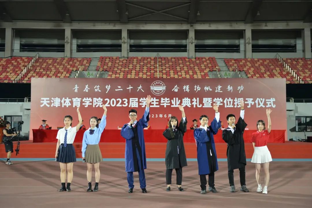 青春筑梦二十大,奋楫扬帆建新功。天津体育学院2023届学生毕业典礼暨学位授予仪式于2023年6月20日晚在田径场隆重举行。天津体育学院党委书记张立顺,党委副书记、院长张欣,党委常委、副书记宋爱军,党委常委、副院长张卫国,党委常委、副院长杨智,党委常委、组织部部长叶加宝,党委常委、宣传部部长刘原,党委常委、统战部部长依惠琴出席毕业典礼。学校各相关职能部门主要负责同志,各二级教学单位领导班子成员,全体教研室主任、研究生导师、辅导员,学生家长代表、往届毕业生代表,以及全体2023届毕业生齐聚一堂,共同欢庆毕业盛典。毕业典礼由宋爱军主持。