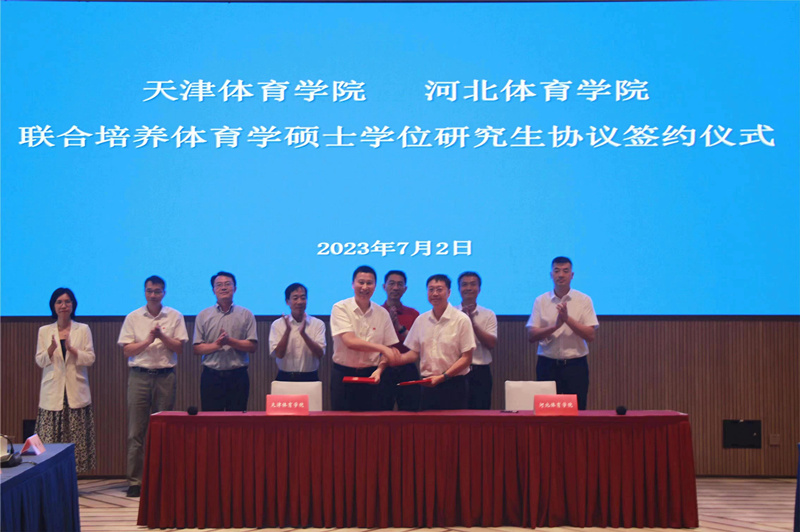 为深入贯彻落实习近平总书记在深入推进京津冀协同发展座谈会上的重要讲话精神,主动加强津冀间高校合作交流,创新人才培养模式,共同推动教育强国建设,7月2日,天津体育学院党委副书记、院长张欣一行赴河北省雄安新区调研,并与河北体育学院共同签署联合培养体育学硕士学位研究生协议。