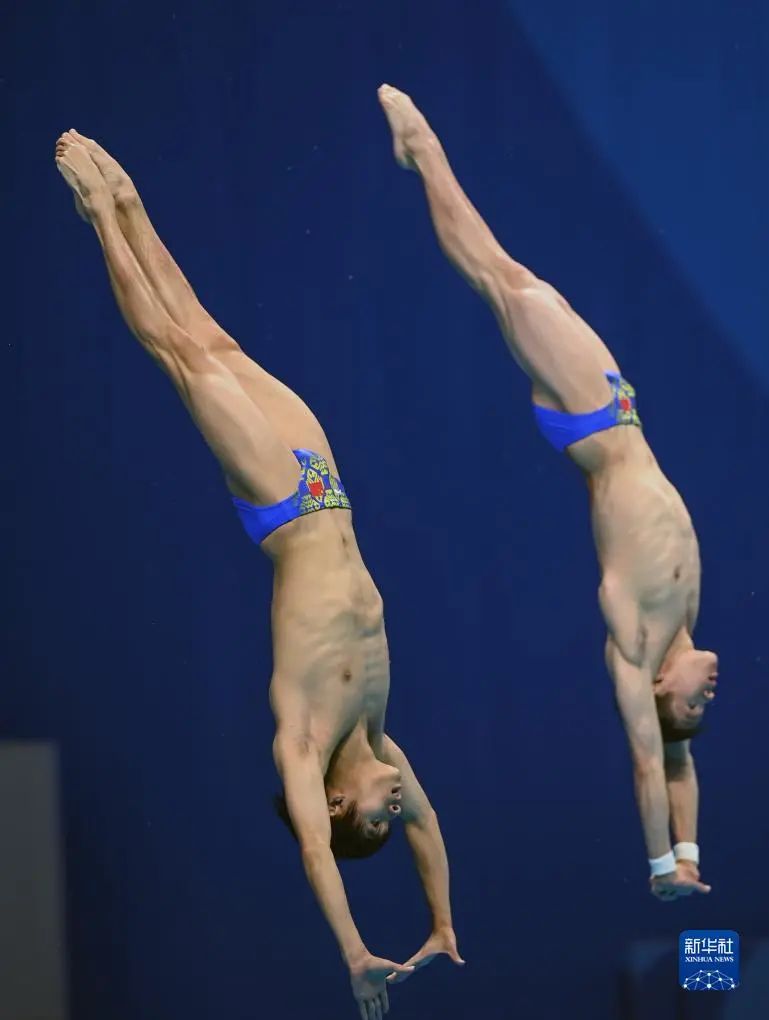 在男双十米台决赛中,我校学子杨凌、黄子淦携手亮相,凭借两人此前多年搭档代表天津队参赛积累的默契,他们在六轮动作中始终保持着头名排位,最终以总分461.22分摘金。