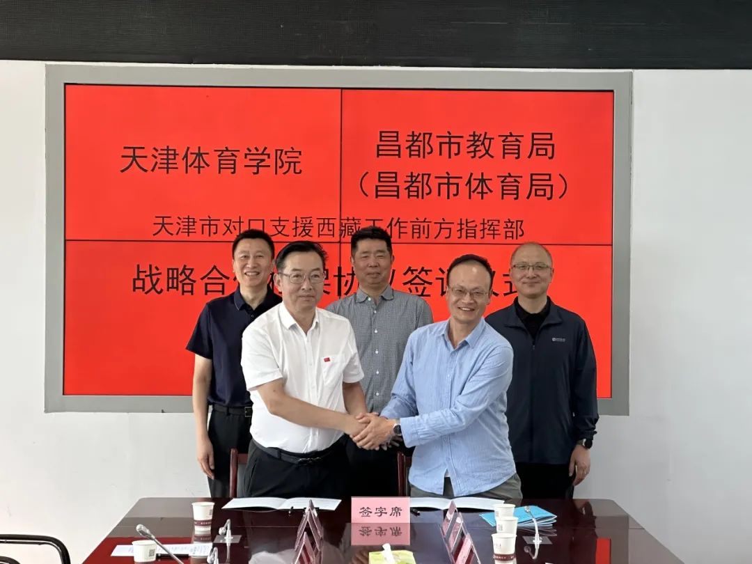 8月19日,在西藏昌都市,学校与天津市对口支援西藏工作前方指挥部、昌都市教育(体育)局签署战略合作三方协议,围绕教育教学质量提升、科研实训平台建设、援藏干部健康指导和青少年竞技体育后备人才培养等开展战略合作。天津市合作交流办公室副主任王东,天津体育学院党委副书记、院长张欣,天津市对口支援西藏工作前方指挥部总指挥张建华,昌都市教育局党组书记干宇出席签约仪式。张欣表示,三方签署战略合作协议是全面提升昌都市教育发展水平、服务教育强国建设的必然要求,天津体育学院将深入贯彻落实习近平总书记关于教育的重要论述和关于西藏工作的重要指示,全面服务昌都市所需,共同促进昌都市办学条件、办学理念、办学能力、师资队伍水平、育人效果显著提高,确保教育援藏工作不断取得新成效。
