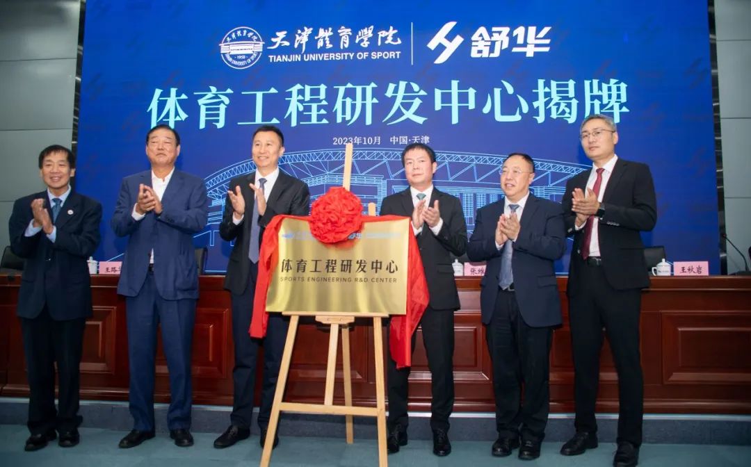 2023年10月10日,天津体育学院与舒华体育股份有限公司战略合作签约暨体育工程研发中心揭牌仪式举行。天津市体育局副局长、一级巡视员王路华,市委教育工委委员、市政府教育督导室总督学王秋岩,舒华体育股份有限公司总裁张维建、副总裁李晓峰,天津体育学院党委副书记、院长张欣出席。天津体育学院相关职能部门负责人,各二级学院院长、科研副院长及师生代表,舒华体育股份有限公司相关部门负责人参加。签约仪式由天津体育学院副院长张卫国主持。