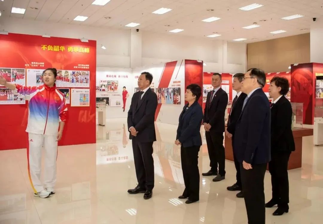 11月4日,李颖川、张玲参观了首批国家体育科普基地、天津体育学院“国家荣誉——中国女排精神展”,听取奥运冠军、天津体育学院中国排球学院常务副院长张娜讲解,随后到位于我校社会体育实训楼的攀岩馆观看攀岩训练。