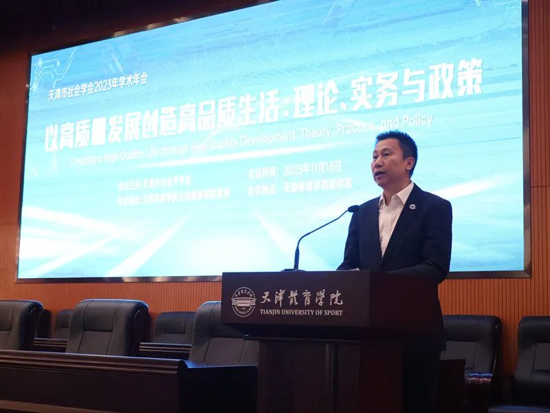 11月18日,由天津市社会学学会主办、天津高校全民健身研究智库承办的“以高质量发展创造高品质生活:理论、实务与政策”天津市社会学学会2023年学术年会在我校召开。天津体育学院党委副书记、院长张欣,天津市社科联党组成员、一级巡视员阎峰,天津市社会学会会长、天津市社科院张宝义研究员等领导专家,以及来自南开大学、天津市社科院、天津师范大学、天津工业大学、天津理工大学、天津职业技术师范大学、天津体育学院、天津公安警官职业学院、天津市实验中学等单位的近200名专家学者参加了本次大会。开幕式由天津体育学院体育人文社科研究中心(全民健身研究智库)常务副主任王旭光主持。