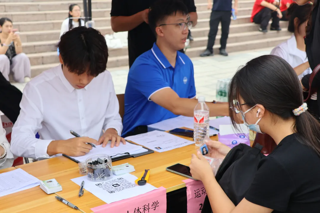 迎新现场环境井然有序,校园手绘地图、创意展板、电子屏、异形木塑等一应俱全,新生们纷纷在签字板前留下姓名并拍照打卡,定格在天体的难忘一刻。