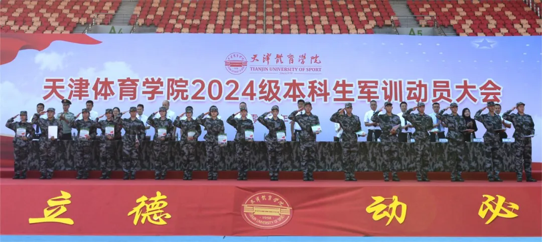 2024年9月6日下午,天津体育学院2024级本科生军训动员大会在田径场举行。校党委副书记、军训工作领导小组副组长宋爱军出席,相关职能部门负责同志、各二级教学单位分管学生工作负责同志、全体承训教官、工作人员及2024级本科生参会。大会由党委学工部副部长、武装部副部长魏玉平主持。