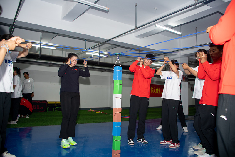 赛艇队长期在校外基地进行训练,为使教练员和运动员更好融入校园活动,缓解训练紧张感,丰富基地活动,此次党日活动以开展素质拓展为主要内容,我校素质拓展中心组织赛艇队教练员和运动员,通过默契生日排队,随机分队,讨论和展示队名、队歌、队形口号等热身之后,在不倒森林、摸石过河、珠行万里、积木筑塔4个素质拓展项目中展开比拼。