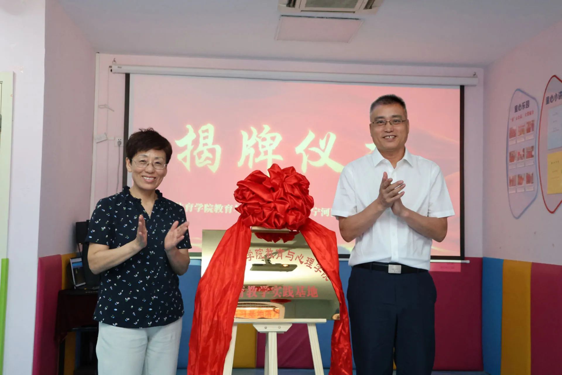 2024年7月18日,天津体育学院教育与心理学院学生实习基地签约揭牌仪式在宁河区童心园智教康复中心举行。宁河区残联党组书记、理事长张秀珍,宁河区政协提案办主任胡守军,宁河区童心园智教康复中心负责人,我校教育与心理学院党总支书记刘泽林、院长孙延林等出席。