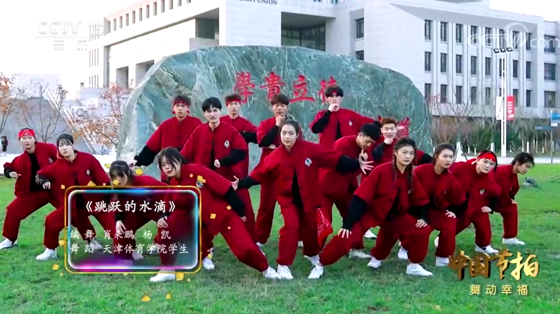 2023年1月29日,中央广播电视总台音乐频道CCTV-15播出《中国节拍》春节特别节目“舞动幸福”。受中央广播电视总台邀请,我校师生拍摄录制的2个原创校园文化作品《跳跃的水滴》《就现在》在该栏目展播。我校学生用歌声和舞蹈展现天体青年不负时代、不负韶华的青春风采,营造喜气祥和的新春氛围。节目在央视网、央视频APP客户端同步播出。