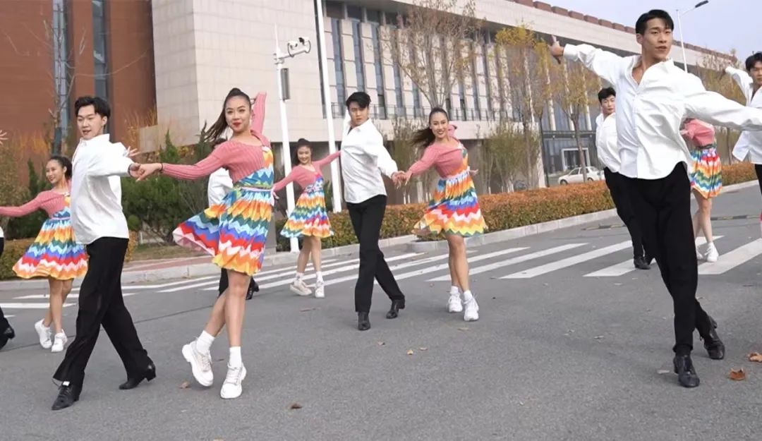 2022年11月下旬,传媒与艺术学院(国际教育学院)教师韩涛、校团委杨旭婷指导学生共同完成2个节目的拍摄录制剪辑工作。街舞《跳跃的水滴》由社会体育学院教师肖来鹏和杨凯创编指导,16名水滴街舞社团学生排演,充满时尚感的动作元素搭配潮流酷炫的音乐,结合街舞中Hiphop风格舞种展示,充分展现天体学子积极向上、活力蓬勃的精神风貌。拉丁《就现在》由传媒与艺术学院(国际教育学院)教师王艺瑾和魏诗瑶创编指导,活泼动感的音乐搭配14名体育舞蹈专业学生们青春靓丽的短裙白衬衫,结合恰恰舞和牛仔舞的专业技能展示,用歌声和舞蹈传递青春正能量,推动大学文化“走出去”, 号召当代青年动起来“就现在”。
